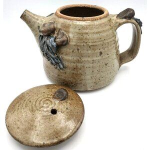 Enjoy a warm brew with a touch of whimsy using this vintage 1970s stoneware teapot, featuring a unique mustache and ponytail design. This one-of-a-kind piece is sure to spark conversation and bring character to your tea-time ritual.