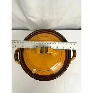 Stoneware Tuscan 3 Quart Bean Pot Casserole with Lid Microwave Oven Safe