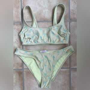 Stoney Clover Lane Lime Green Palm Tree Bikini Top + Scoop Bottom #4812; size M