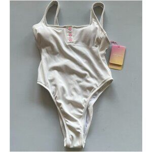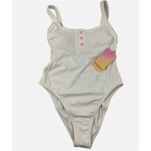 Stoney Clover Lane One Piece Swimsuit White Henley Heart Button Size XS