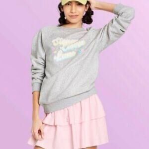 Stoney Clover Lane Rainbow Spell Out Crew Neck Heather Gray Sweatshirt XXL