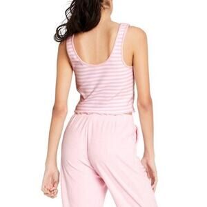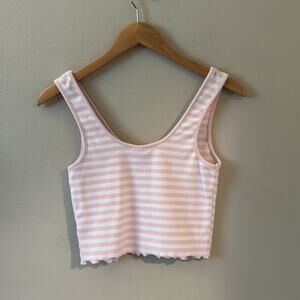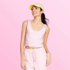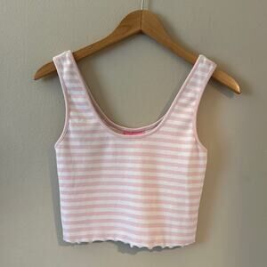 Stoney Clover Lane Stripped Ribbed Lettuce Hem Crop Tank Top Sz XS Pink White