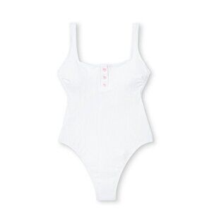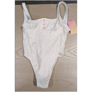 Stoney Clover Lane White Ribbed Henley One-Piece Swimsuit Size Small