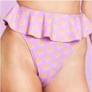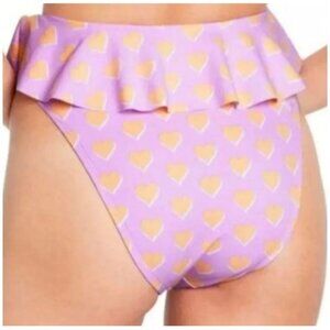 Make a statement at the beach with the Stoney Clover Lane Women's High Waist Flutter Bikini Bottoms! Featuring a charming heart print in purple, these high-waisted, high-leg cut bottoms offer a flattering fit. Flirty ruffle details add a playful touch, making them a must-have for your swim collection. Size M.