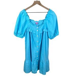 Stoney Clover Lane x Target Womens Blue Linen Blend Ruffled Mini Dress Medium