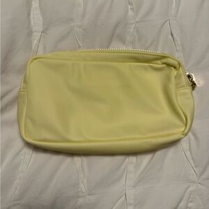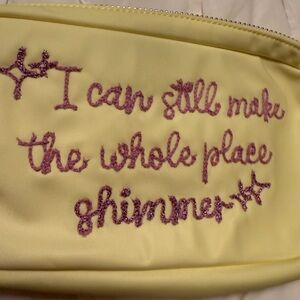 Chic and stylish yellow Stoney Clover Lane cosmetic pouch featuring elegant Taylor swift inspired purple embroidery. Perfect for organizing your essentials with a touch of shimmer. NWOT. SCL.