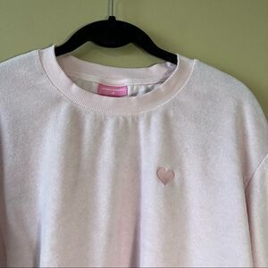 Stoney Clover Lane X Target women’s light pink Terry cropped crewneck sweatshirt with heart on chest.
