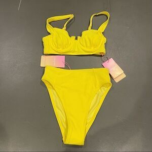 A yellow bikini is a seasonal staple. These Stoney Clover Lane x Target Underwire Textured Bikini Top (XXS) and High-Waist Bikini Bottom (XXS) are sunny, flattering, and fun.