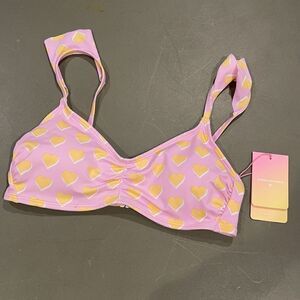 Stoney Clover Lane Purple Flutter Strap Heart Print Bralette Bikini Top