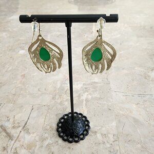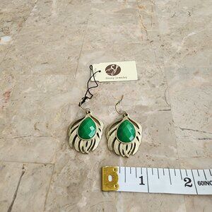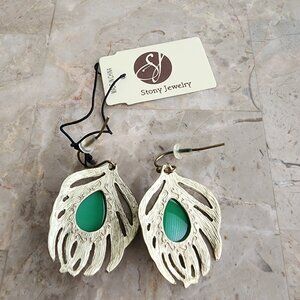 Stony Drop Leaf Motif Fashion Earrings