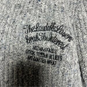 Stoogie & Co Men Cardigan Sweater Large Gray Button Front Japanese Wool Spellout