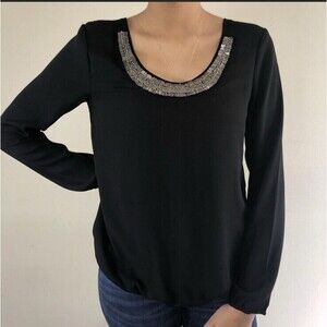 Stoosh Black Embellished Neckline Cut Out Back Top Size S Long Sleeves.