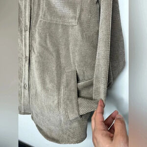 Stoosh Faux Corduroy Long Sleeve Brown Button Up Shirt Shacket Sz XL Cozy Travel