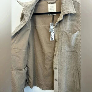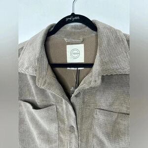 New Stoosh oversized soft corduroy button-up top shacket in a stunning shade of brown. Featuring front pockets, this top is perfect for travel, casual outings, or even workwear. The relaxed fit and casual sleeve type make it a versatile piece that can be styled in different ways.