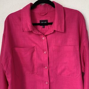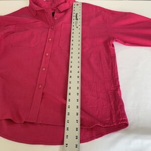 Stoosh Shirt Women L Pink Button Linen Blend Pockets Beach Twee Colorful Barbie