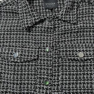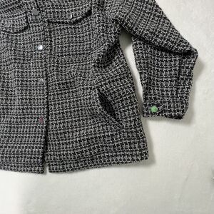 Stoosh Tweed Snap Front Jacket Womens Sz L Black White Check Plaid