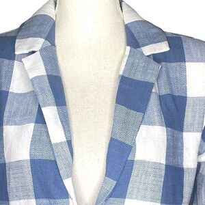 Stoosh Wm’s Sz Sm Blue White Plaid Waist Length Blazer
