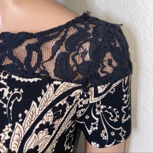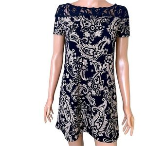 Stoosh black and white paisley print Lace trimmed square dress SZ Sm