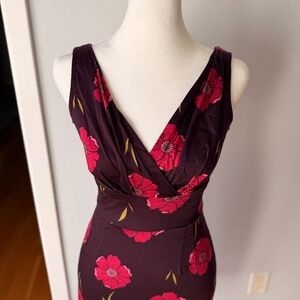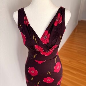 Color: Dark Burgundy/Brown with Red & Pink Floral Print
