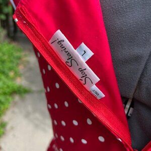 Stop Staring! Red White Polkadot Swing Dress size Large EUC!