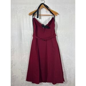 Stop Staring Swing Dress 18 Red Black Polka Dot Halter NEW Belted Rockabilly