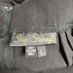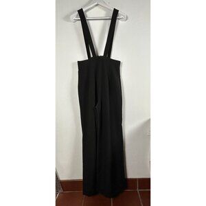 Stop Staring! Womens Suspender Style Jumpsuit Large Black Wide-Leg Stretch USA