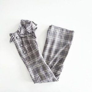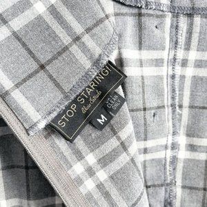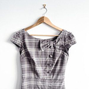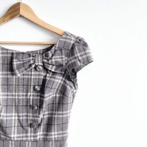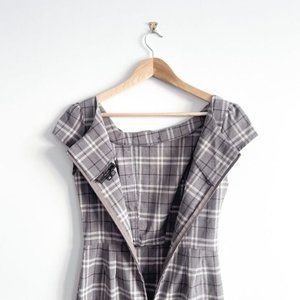 Stop Staring by Alfred Estrada Womens Midi Dress Bow Tie Plaid Gray Medium