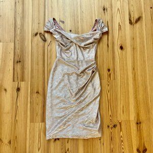 Stop Staring rose gold Silver lurex wiggle cocktail Dress medium