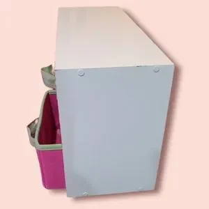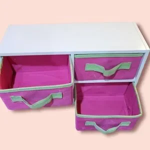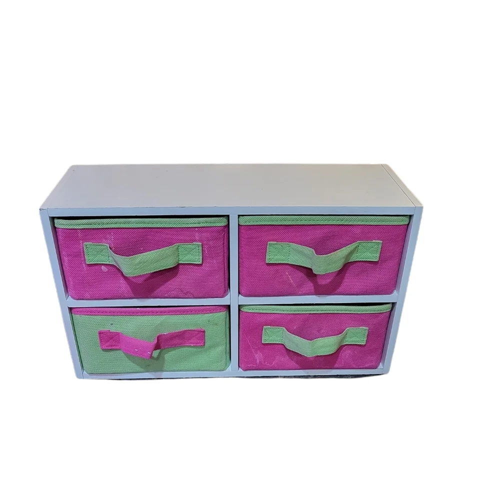 Small storage box. White wood with 4 foldable drawers with pulls. In great condition.
