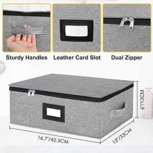 This storage bag can hold anything that you would like. The compartment dividers are removable. The double zip storage piece has a labeling piece on the front for easy organization. It is like new, and measurements are shown in photos.