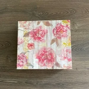 Storage box with magnetic closure in floral print design in like-new condition.