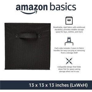 Storage Cube Bins Set of 6 Black Fabric 13x13 Foldable Organizer with Handles