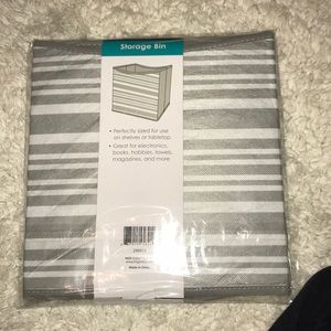 Collapsible, perfect size for storing electronics, books, magazines, toys and more. Striped pattern, great for shelves or table top.