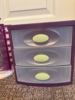 1 box with 3 drawers , each drawer measures 6 in by 7 in.