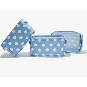 Store toiletries, baby clothes, sandals, swimsuits, and more in this set of three storage bins. The list truly goes on and on for what this set can hold. we love the blue and white polka dot print too!