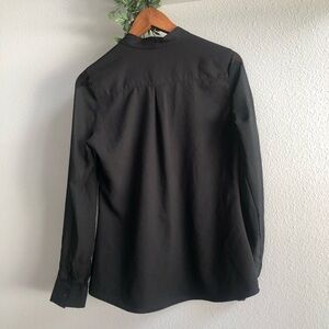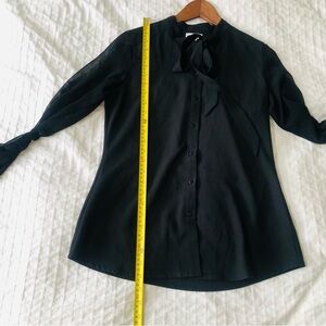 Elegant black blouse with button-up front and tie-neck detail. The sleeves are sheer in Excellent condition EUC