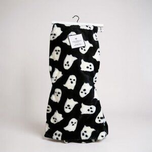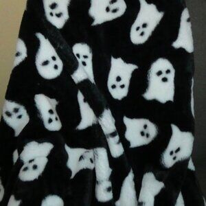 Storehouse Faux Fur Throw Blanket Black White Spooky Ghosts Halloween NWT