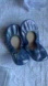 Suede base with a sparkly, oil slick like finish that shows off a rainbow no matter what light you are in. The base of these is a gorgeous cobalt blue. Soft suede fits true to size.