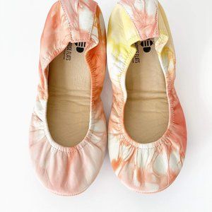 Two of my favorite things swirled together into a shoe! My perfect smoothie would be yogurt and ice blended together with peaches, pineapples and strawberries. Think of that colorful concoction and you’ll be close the the color palette on these shoes. Peach, yellow and salmon all on a white unprecedentedly soft base leather. Think traditional leather but worked to a thinner thickness. These are like HEAVEN on your feet. These are comparable to other pricey brands for a fraction of the price