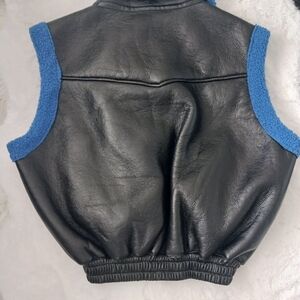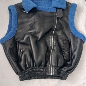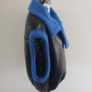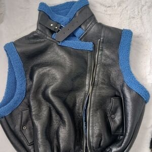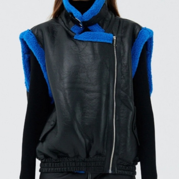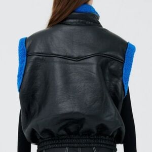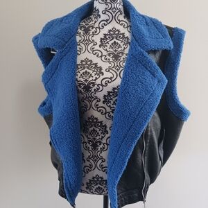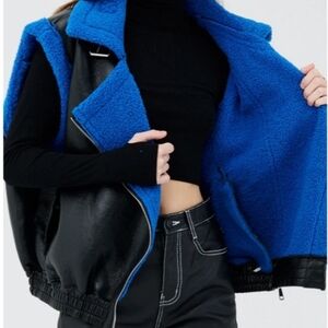 Storets stylish Ayra Faux Sherling women's vest featuring a bold black and blue design. Perfect for adding a pop of color to your wardrobe.
