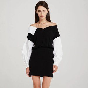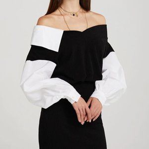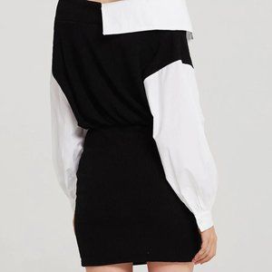 Combining the look of a V-neck dress and oversized shirt inside.