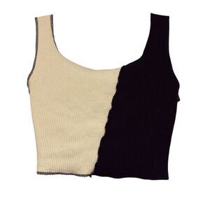 Storets S/M Black White Asymmetrical Colorblock Distressed Ribbed Crop Top
