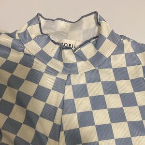 Stori NWOT Girls Checkered Long Sleeve Lightweight Top Mock Neck & ruched front.