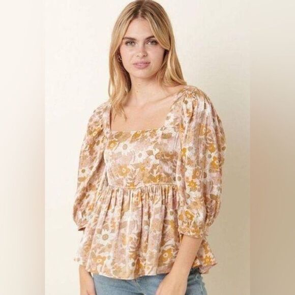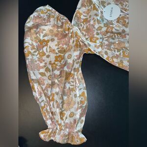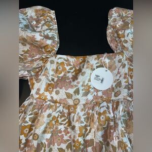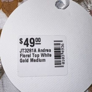 Storia Andrea Floral Top in White Gold Blouse Size Medium NWT