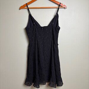 Storia Babydoll Black Dress Lined Sz M Eyelet Spaghetti Strap Cutouts Flirty Y2K