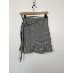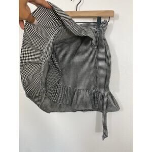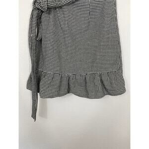 Storia Black White Check Wrap Mini Skirt Ruffle Hem Size Small