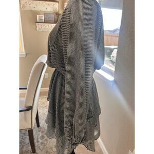 This Storia mini dress is a colorful addition to any wardrobe. The black and white striped pattern adds a touch of playful elegance, while the 3/4 sleeves and short length make it perfect for a summer day out. The dress is available in size small (4-8) and is suitable for women of all ages. The brand is known for its quality clothing, and this dress is no exception. Whether you're dressing up for a special occasion or just want to add some excitement to your everyday look, this dress is sure to turn heads.