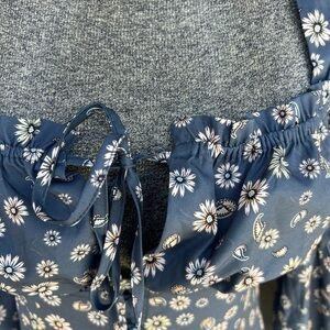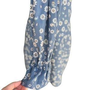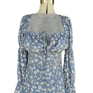 Storia Blue Floral Puff Sleeve Smocked Button Dress