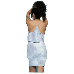 Storia Clear Skies Draped Racerback Blue White Stretch Dress Size S NWT