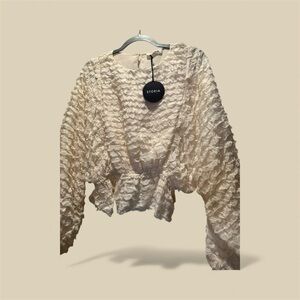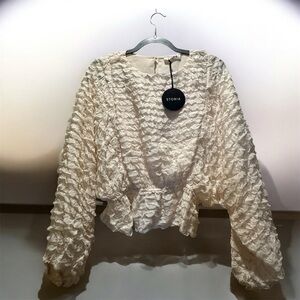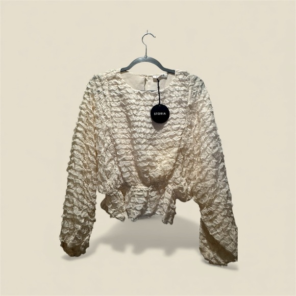 Chic cream top with ruffle texture. Long sleeves for a stylish look.